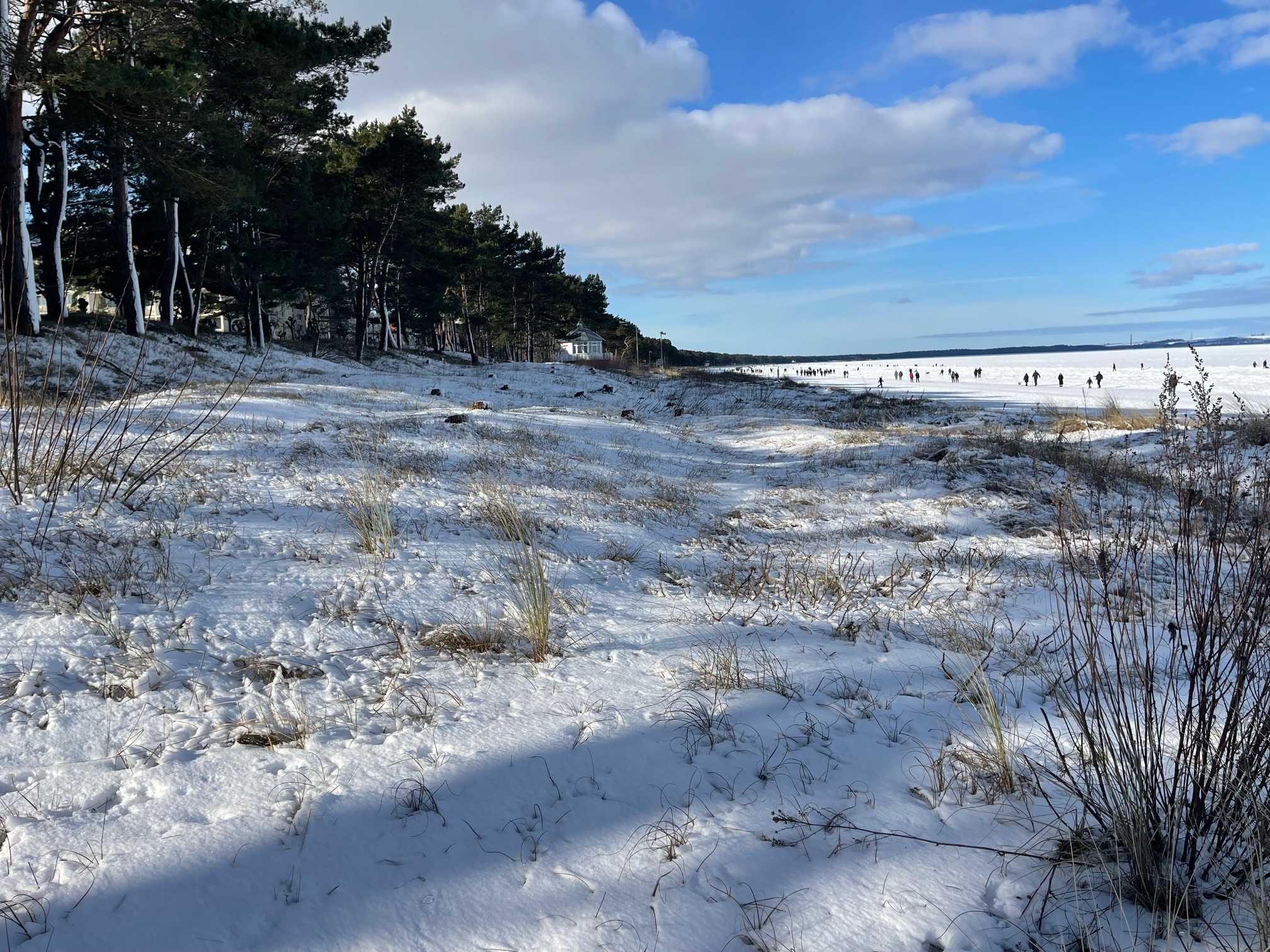 • ein lockerer Bestand aus Hochkiefern entlang der Promenade,